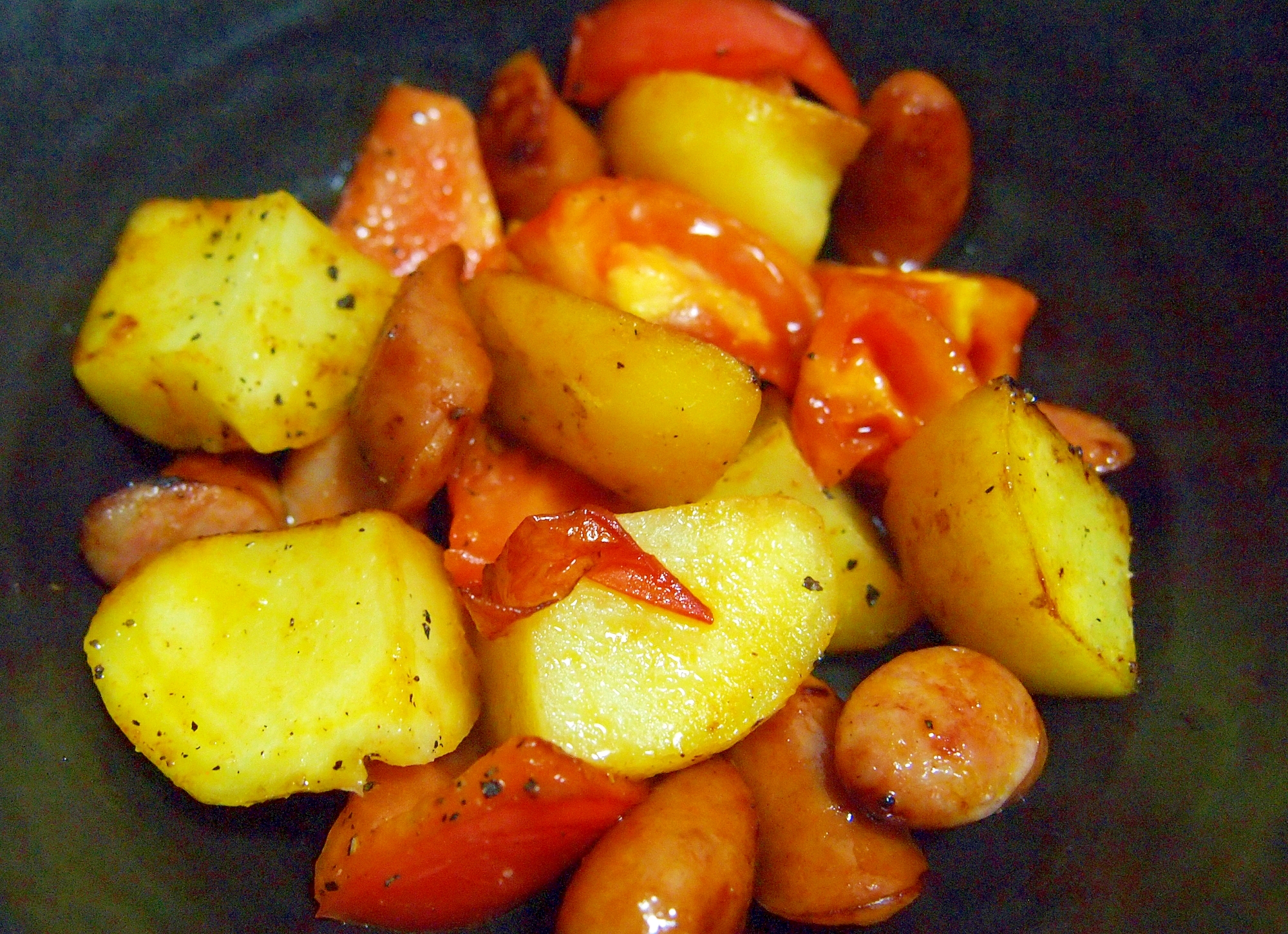 じゃがいもとトマトとソーセージのソテー レシピ 作り方 By まるっとまる 楽天レシピ