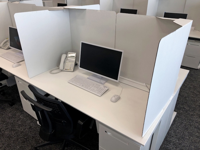 新型コロナ 段ボール間仕切りで分散着席 在宅 不可 職場の模索 日本経済新聞