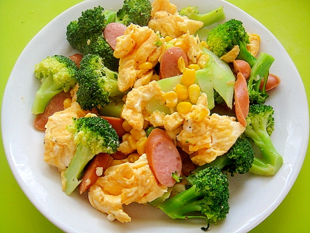 ブロッコリーとコーン ウインナーの卵炒め レシピ 作り方 By Mint74 楽天レシピ